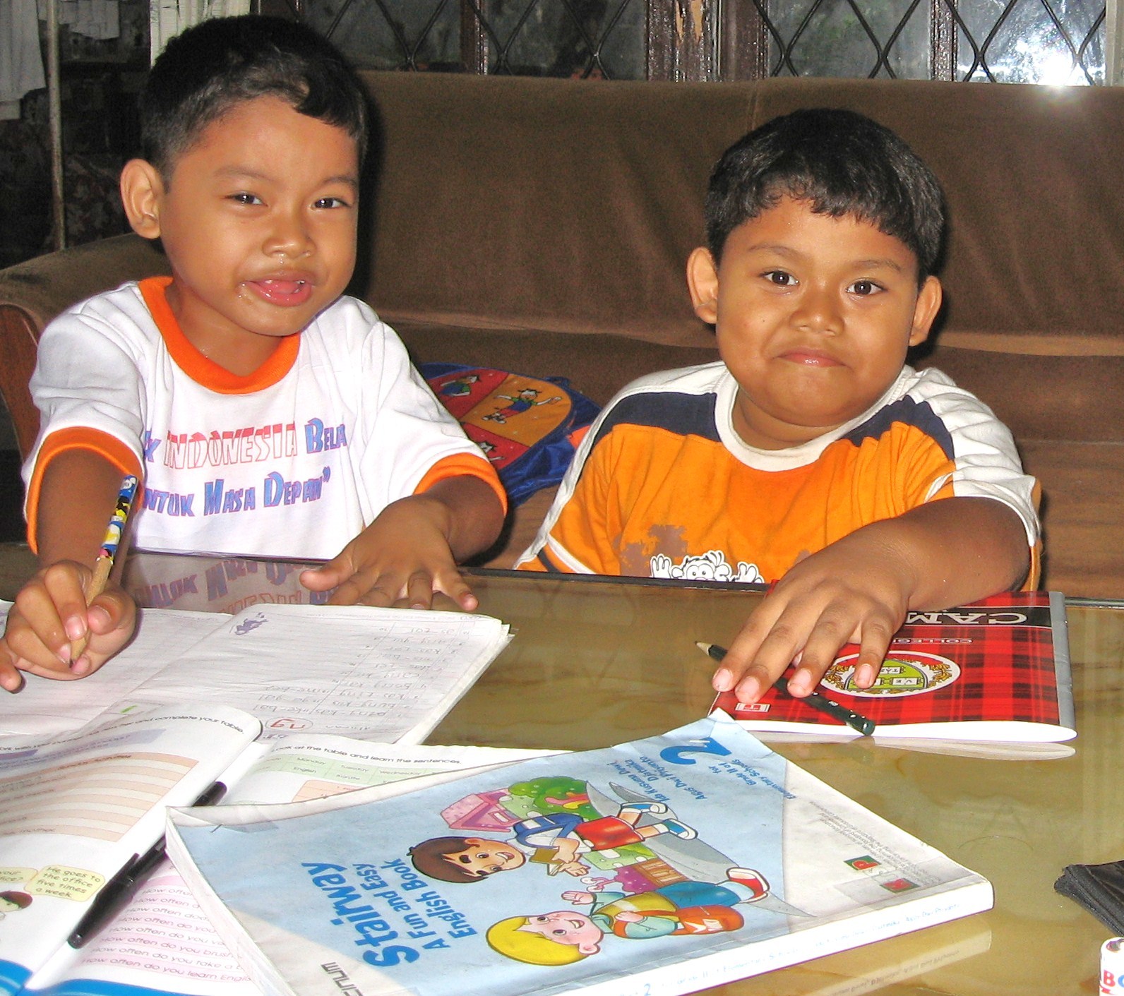 Selasa sore (6/8) Dio dan Dite datang untuk les bahasa